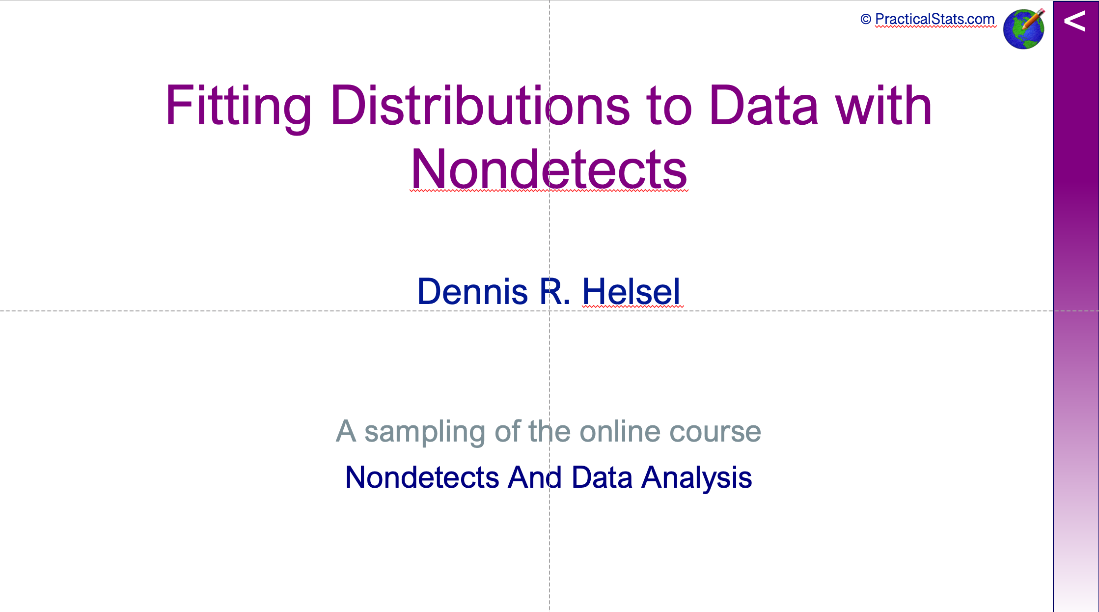 All videos here are free to view. They 'give you a taste' of methods covered in our Nondetects and Data Analysis course.