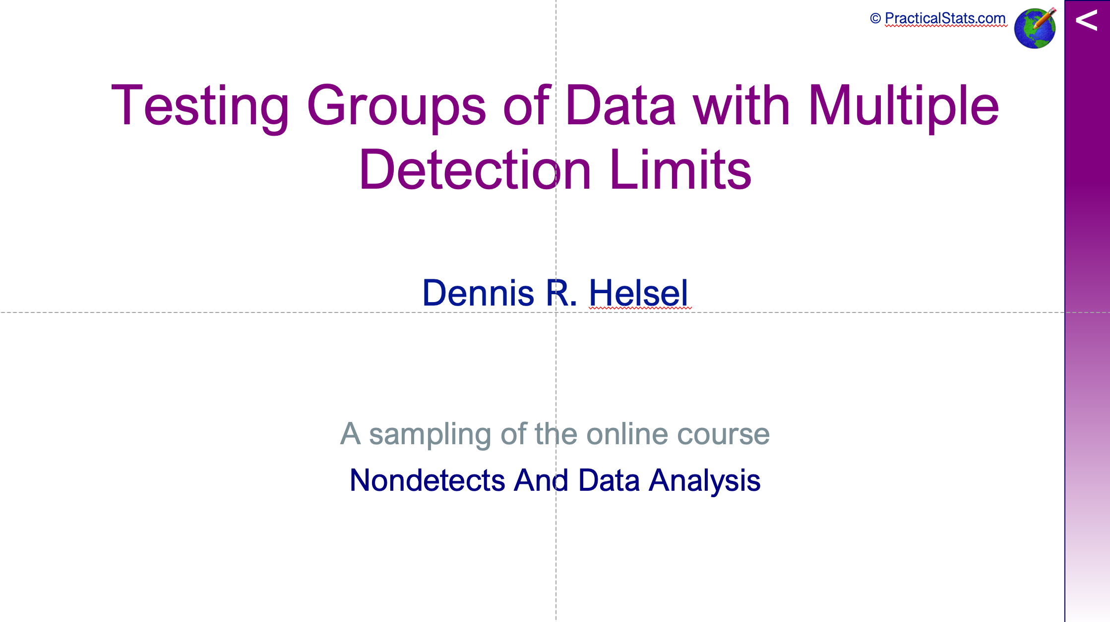 All videos here are free to view. They 'give you a taste' of methods covered in our Nondetects and Data Analysis course.